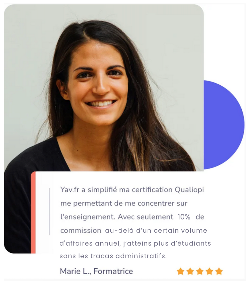 Chez Yav.fr, nous partageons notre certification avec vous, vous permettant d'élargir votre offre de cours sans passer par les démarches complexes de certification. Ensemble, facilitons l'accès à l'éducation.